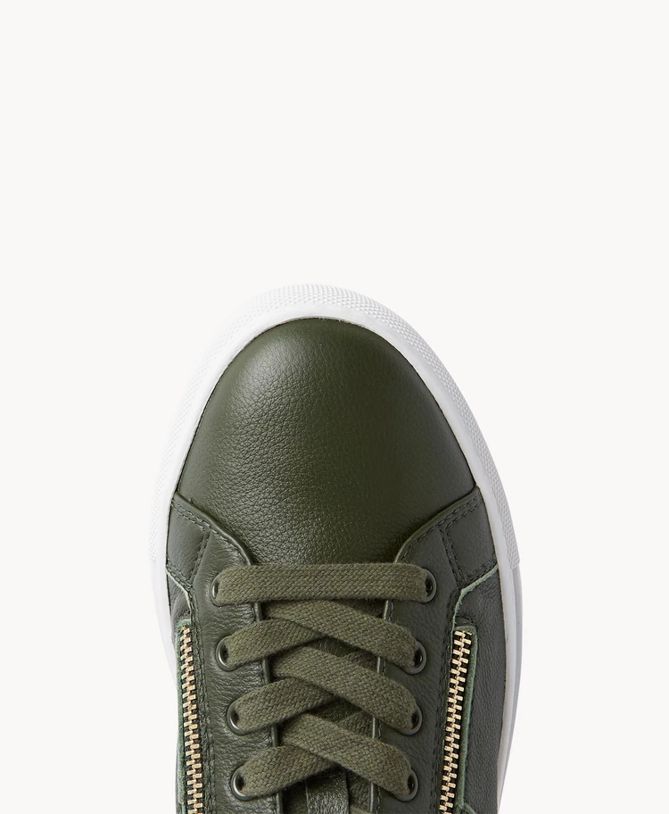 Our Adler sneaker features a side zipper and metallic heel insert that really elevates this style.. Pair these with anything from denim to dresses.