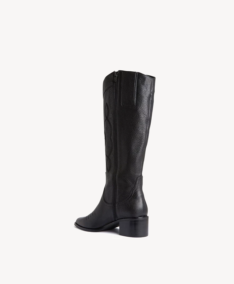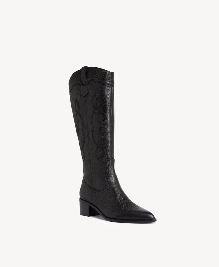 Our Buxton knee high boot embodies the best of the West, with ornamental top stitching and a curved top-line that both elevates and accentuates. Pair this statement style with a bold-hued dress and blazer for a look that’s fresh and fashionable.