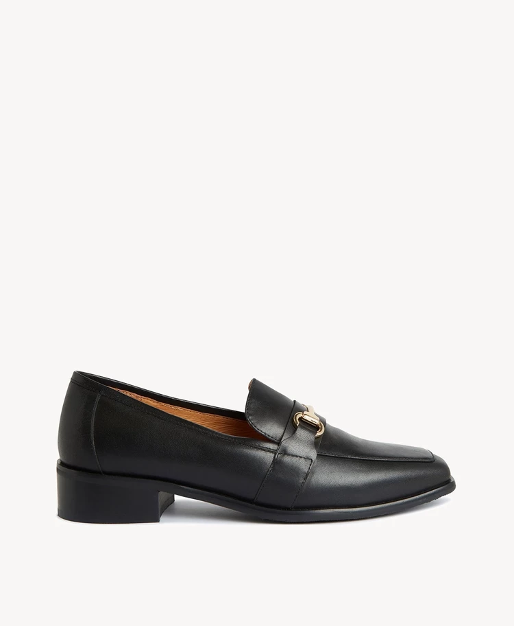 Our Delicia flat loafer has the kind of classic styling that pairs perfectly with crisp denim and an oversized trench. Set on a low leather stacked heel, Delicia has a square toe and heritage Horse bit embellishment.