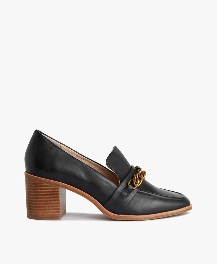 Adorned with a classic gold chain, the Delphie loafer speaks to timeless sophistication. Pair this style with cropped trousers and lean into the chic look of these loafers.
