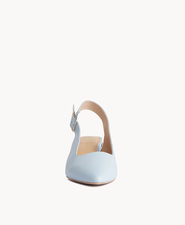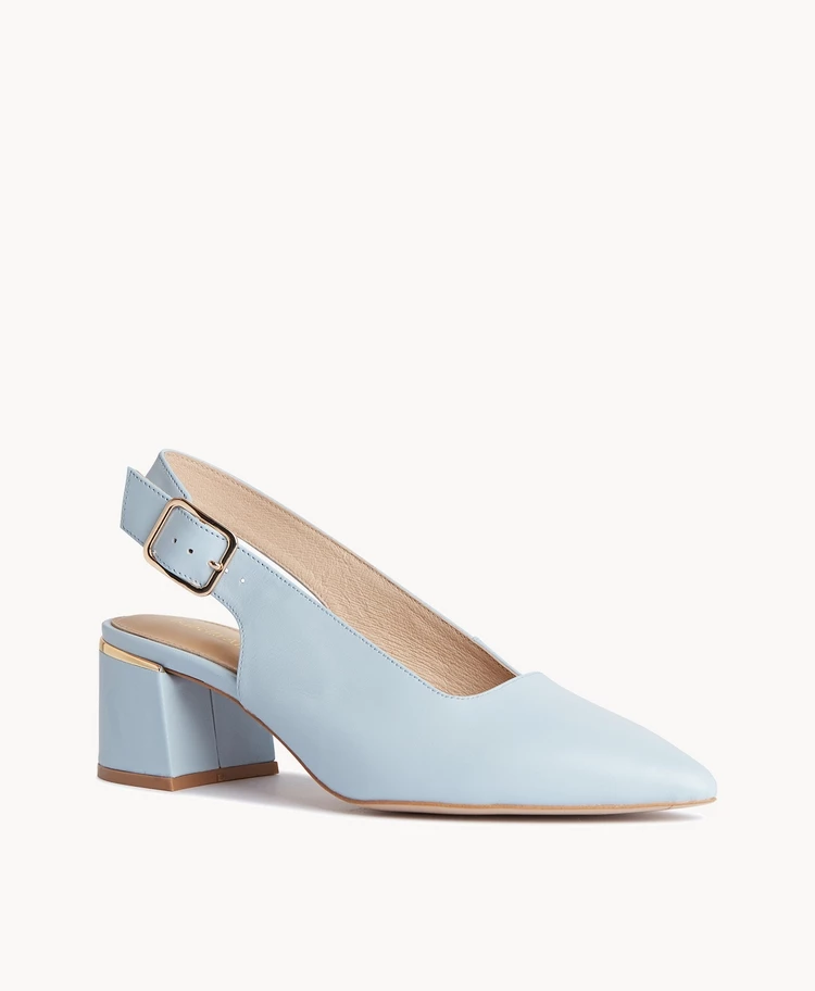 Our Dolce slingback heel is super versatile, with crisp clean style lines and an elegant metal plate heel insert. The low block heel makes these the perfect day to night style.