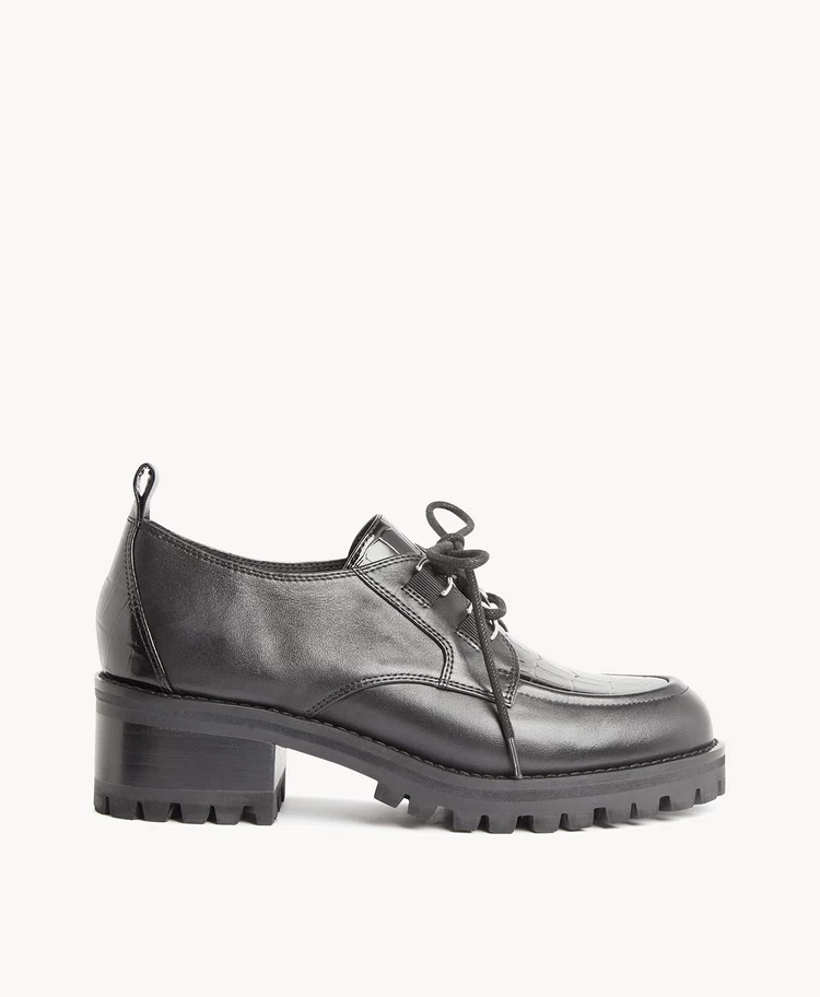 The upper on our Esky lace-up shoe is inspired by classic mens footwear, made modern with a chunky platform sole. Offset this utilitarian style with flowy skirts in bright colours.