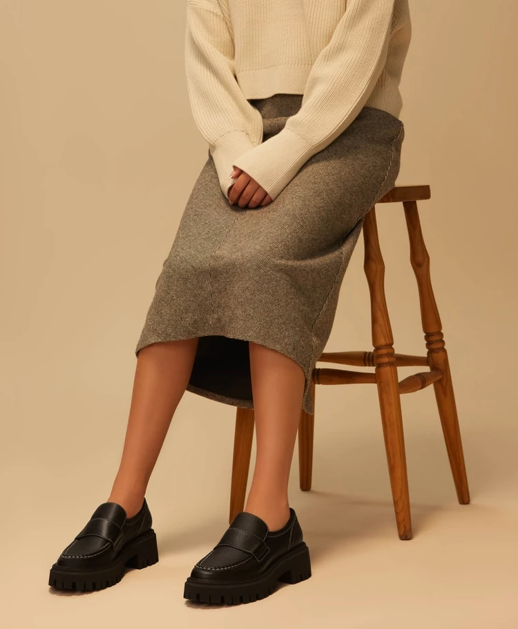 The Franko loafer embodies all that is currently trending, a chunky rubber outsole, topstitch detail and a modern loafer cut. Pair with cropped pants or juxtaposed with floaty dresses, Franko will become a firm favourite.
