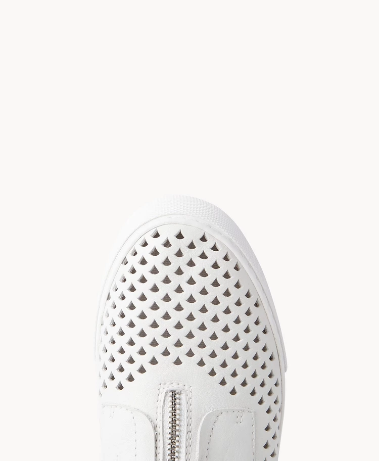 Meet Ireland. The zip hardware and perforated leather come together to elevate this summer sneaker. Wear her to the beach paired with denim for an effortless look.