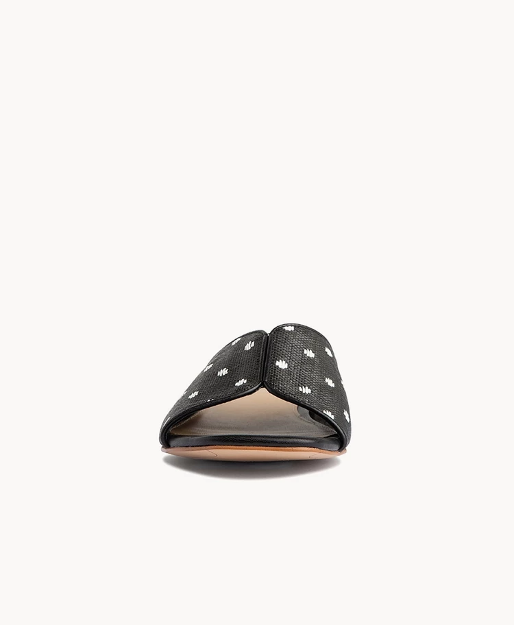 Lilo will add excitement to your outfit this season. Inspired by natural materials, this casual sandal takes a twist on the raffia design with a cute spot pattern. Crafted with two panels combined and fully leather lined for premium quality.