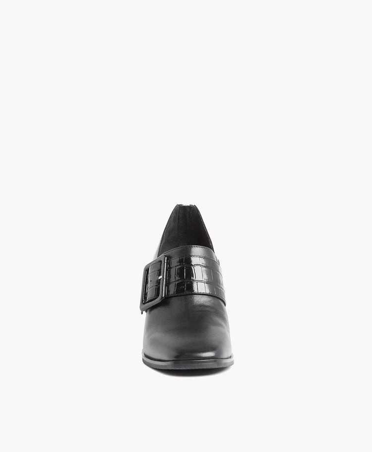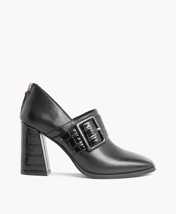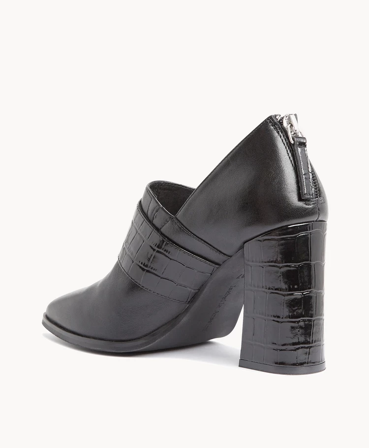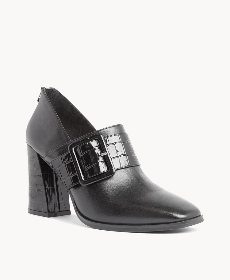 Our Markle heels croc embossed detailing lends this style a sophsiticated edge. The flared block heel and back zip ensure this style is super wearable, for day to night wear.