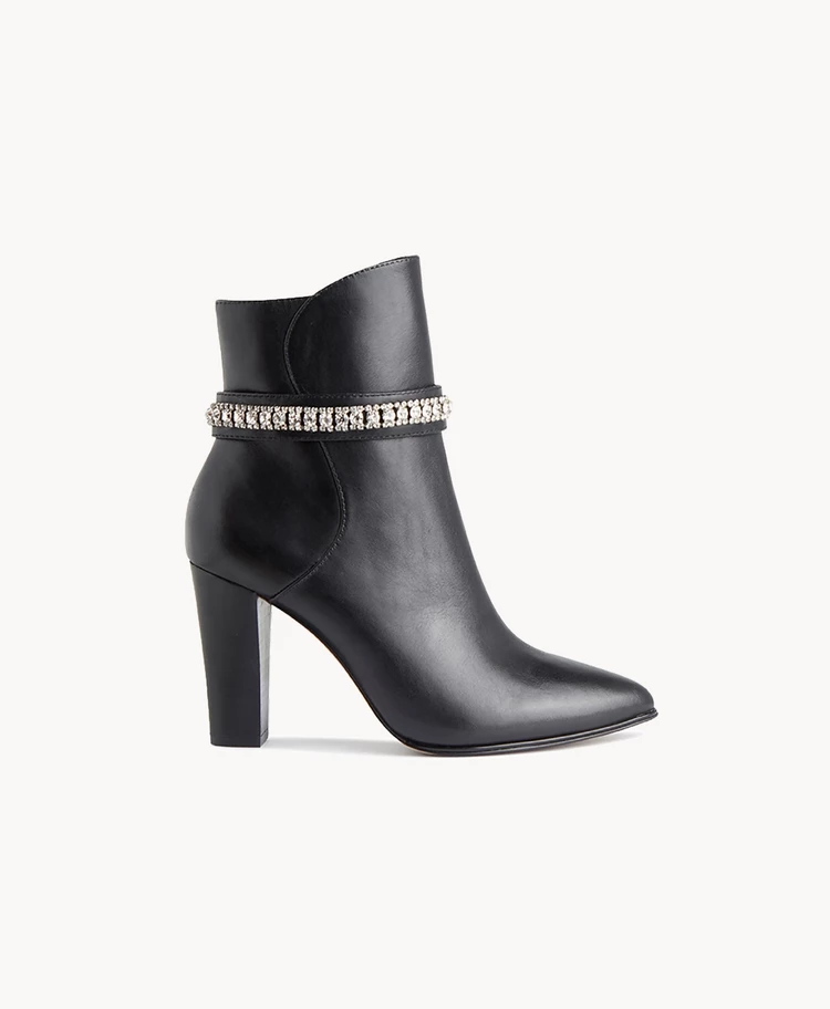 This knockout style has a curved side seam and removable diamante trim that will elevate and compliment your favourite looks. With a sharp toe and grounding block heel, pair Mika with or without the diamante trim with anything from jeans to sleek eveningwear.
