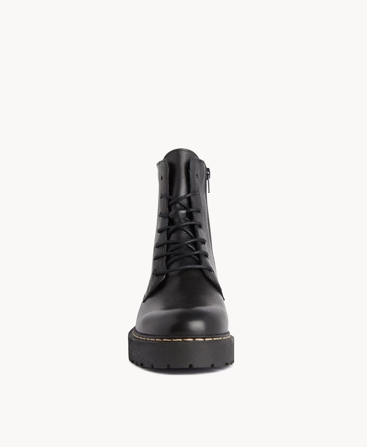 Our Odette ankle boot has a chunky rubber sole with contrast stitching and fine laces that make this utilitarian style look dressy. Pair yours with wide tailored trousers and your favourite winter knit.
