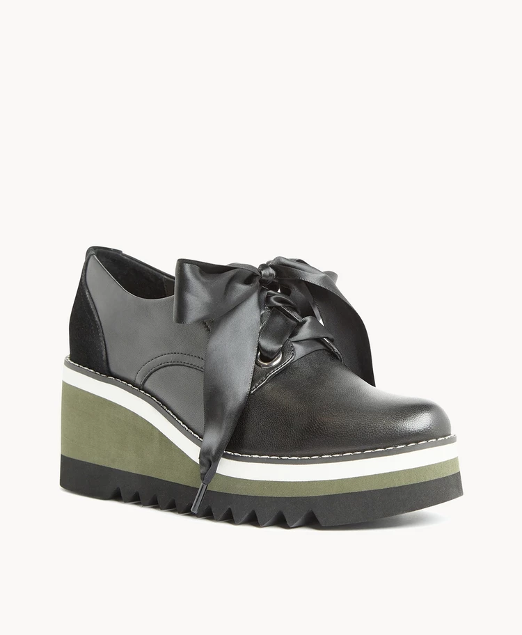 Our Sapna platform lace-up takes it’s inspirtation from classic brogue styling, updated with lush ribbon laces and a contrast platform heel that feels super modern. These are easy to dress up or down with all your winter favourites.