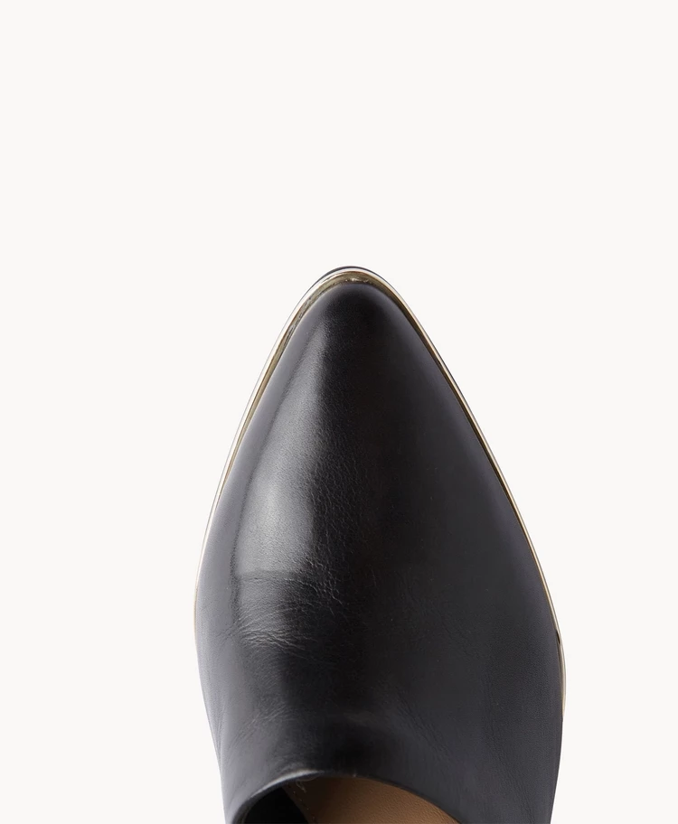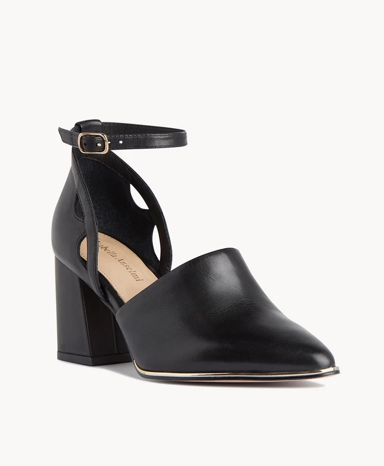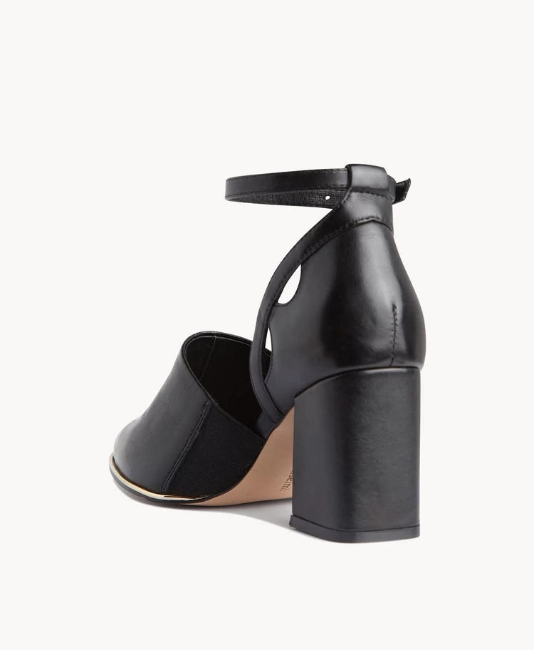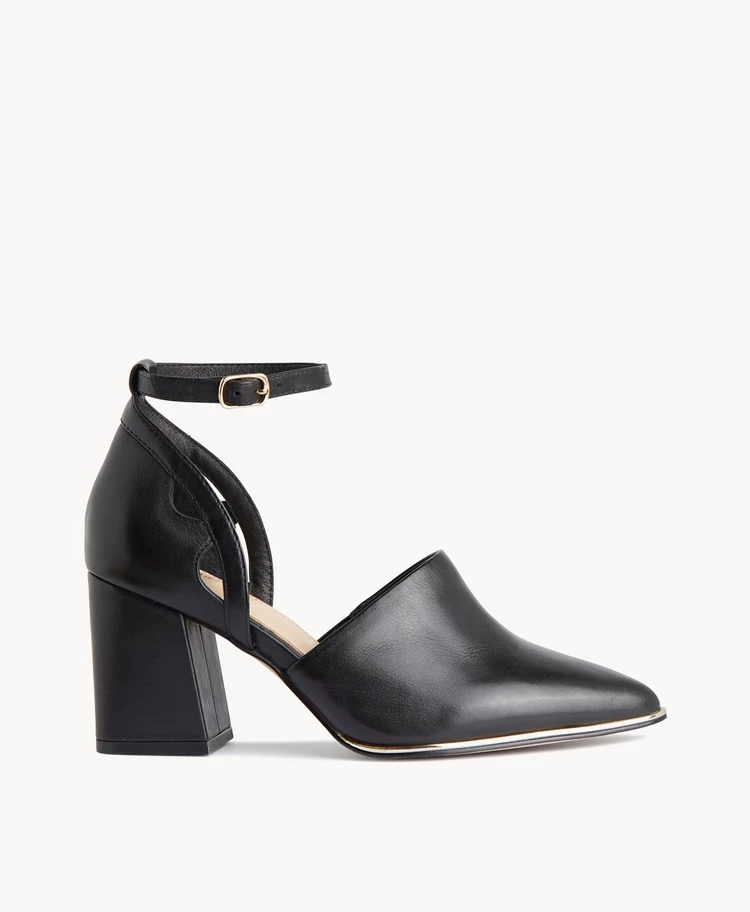 This ultra flattering style has the kind of subtle detailing and fit that works for any occasion. Sidder’s high cut and block heel allows for hours of wear, and the cutout upper is traced with a thin ankle strap that feels really elegant. Match your jewellery to the metallic plate rand.