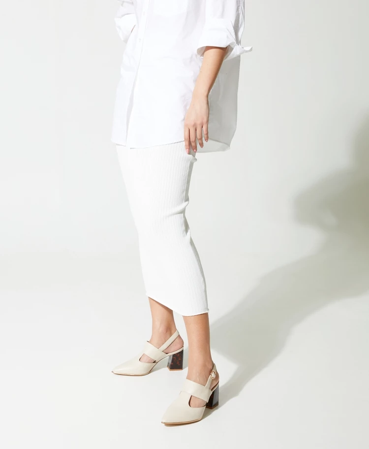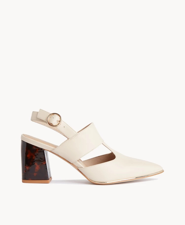 The Sonia slingback. Featuring a statement heel and slick pointed toe, this elevated style is as suited to the boardroom as it is to the bar.