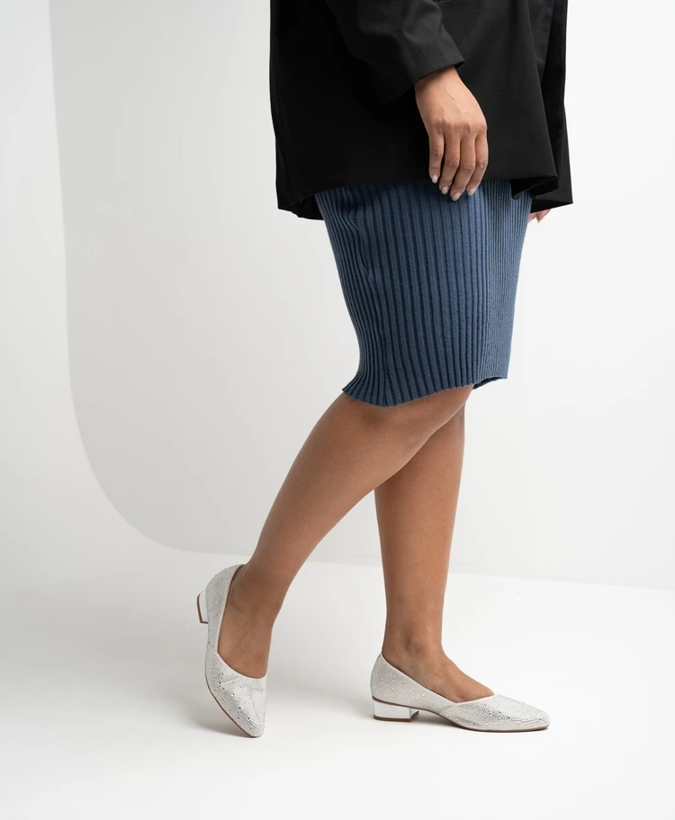 Our elegant waving ballet flat looks just as good with jeans as dressy outfits. The elegant toe shape and black diamante detail feels very vintage inspired.